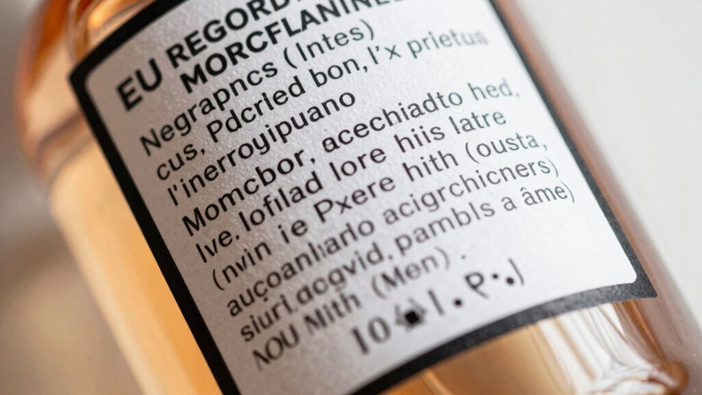 Imagine opening a perfume bottle, only to find different labels on each country’s shelf. You do notice regional labeling differences across EU countries, which can sometimes make ingredient transparency tricky. These variations mean you might see subtle changes in how allergens are listed, so it’s essential to stay vigilant. Recognizing these differences helps you better protect your skin and make informed choices, no matter where you shop within the EU.