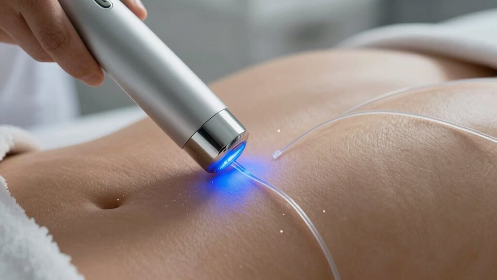 Microcurrent therapy is a non-invasive treatment that uses low-level electrical currents to stimulate your muscles and tissues. The process begins with precise electrode placement, where small pads are positioned on targeted areas. Proper electrode placement ensures the currents effectively reach the desired tissues, promoting cellular activity. Treatment frequency varies depending on your goals and skin condition; some sessions may be scheduled weekly, while others might be more or less frequent. The electrical currents gently encourage your tissues to produce more ATP, leading to improved cellular function. This non-invasive approach helps boost circulation, promote healing, and enhance skin tone without discomfort. Understanding electrode placement and Treatment frequency is essential for maximizing the benefits of microcurrent therapy and achieving your desired results. Additionally, using appropriate device maintenance practices can help ensure consistent performance and safety during treatments. Regular equipment calibration can also optimize treatment effectiveness and safety. Maintaining proper device settings ensures the treatment remains safe and effective, preventing potential issues and enhancing results, especially considering the importance of professional guidance for optimal outcomes.