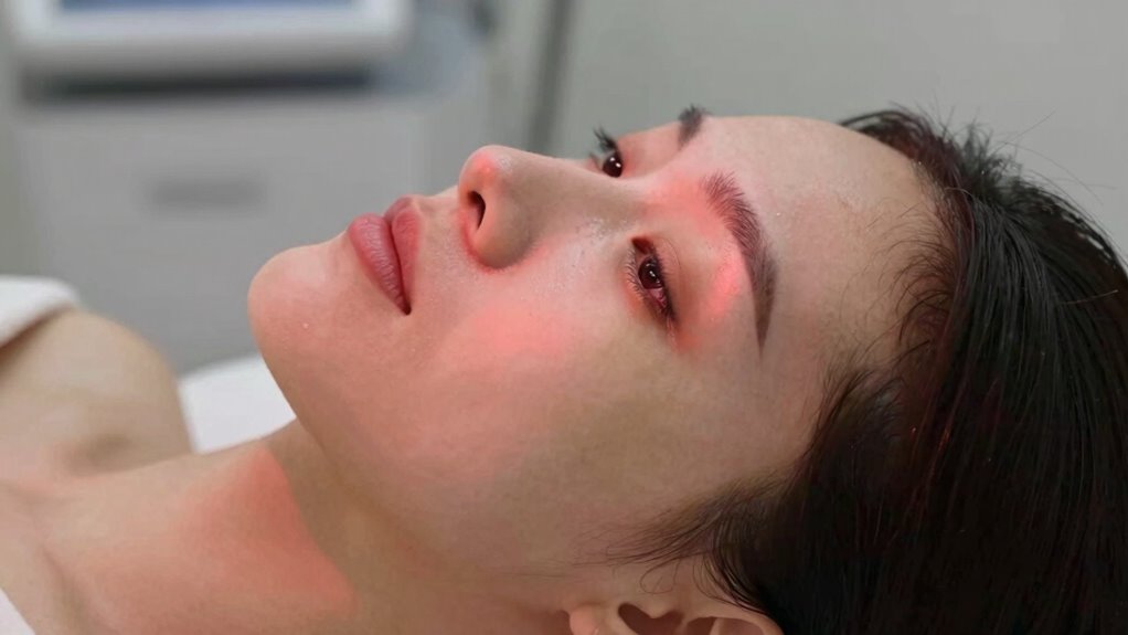 While you might start noticing subtle changes within a few weeks, the timeline for visible results from red light therapy varies based on individual factors and the specific condition you’re targeting. Consistency is key, and paying attention to skin sensitivity helps prevent irritation. Typically, you’ll see improvements after several sessions, but it depends on your skin’s response and session duration. It’s essential to keep sessions regular and adjust duration if your skin feels sensitive. Over time, persistent use can lead to clearer, healthier skin and reduced inflammation. Remember, patience is essential. Your body needs time to respond to the therapy, so stay committed and monitor how your skin reacts during each session. Consistency and gentle adjustments yield the best results.