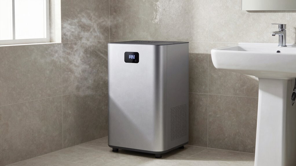 Bathroom dehumidifiers are like quiet whispers, so you probably won’t notice their operating sounds. Most models have noise levels that range from gentle hums to soft, unobtrusive sounds, making them suitable for bathrooms. Modern units are designed to operate quietly, so you can run them while showering or sleeping without disturbance. If noise levels are a concern, look for dehumidifiers labeled as “quiet” or with lower decibel ratings.