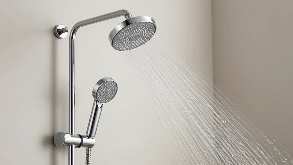 Adjustable spray settings enhance the versatility of handheld shower heads by allowing you to customize your bathing experience with ease. With these features, you can easily switch between different spray patterns, such as a gentle mist or a powerful jet, depending on your mood or needs. Adjusting the spray pattern is simple, giving you control over the water flow and coverage. You can also modify the jet strength to create a more soothing or invigorating shower. This flexibility helps you target specific areas or simply enjoy a more relaxing rinse. Whether you prefer a soft rain-like flow or a concentrated massage, adjustable spray settings make your shower more personalized and enjoyable. They provide the convenience of tailoring your experience without needing additional fixtures or tools. Advancements in nanotechnology are also contributing to the development of more efficient and customizable shower components.