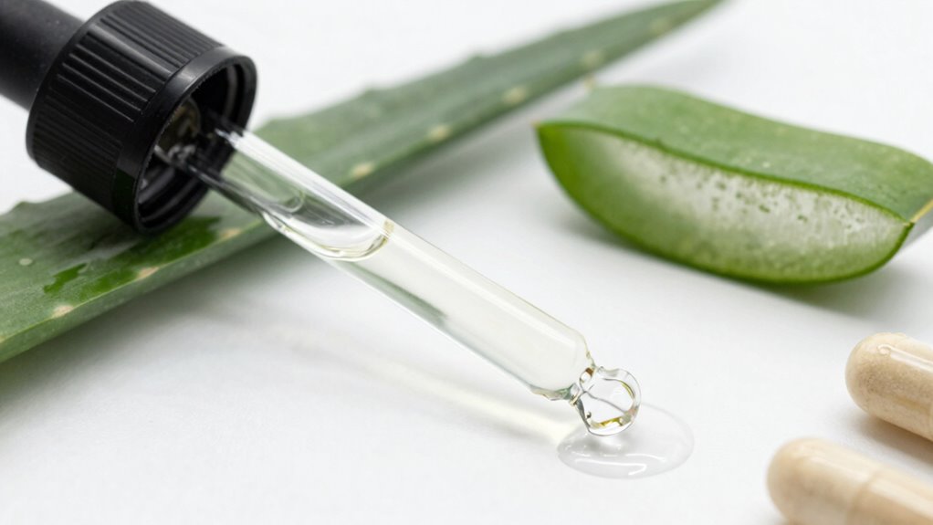If you have sensitive or reactive skin, exploring alternatives to niacinamide can help you achieve your skincare goals without risking irritation. Natural alternatives like aloe vera, chamomile extract, oat extract, and centella asiatica are gentle options that soothe and repair your skin barrier. These ingredients often compare favorably in ingredient comparisons, offering calming effects without harsh chemicals. Here’s what you might consider:
