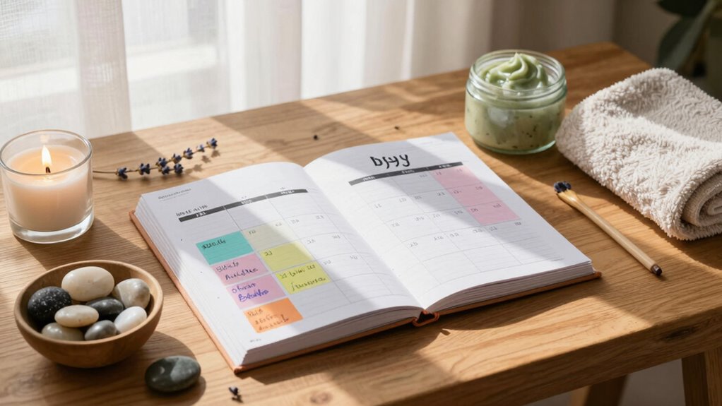 Keeping a journal keeps you motivated and ensures your schedule evolves with your needs. Regularly adjusting routines based on your journal insights guarantees lasting relaxation and a personalized at-home spa experience.