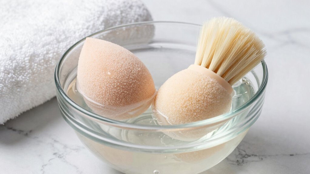 Choosing gentle cleansing solutions is essential to effectively clean your beauty tools without causing damage. Using the right gentle cleansing solutions guarantees you follow safe cleaning practices while maintaining your tools’ integrity. Here are three options that can make a difference: