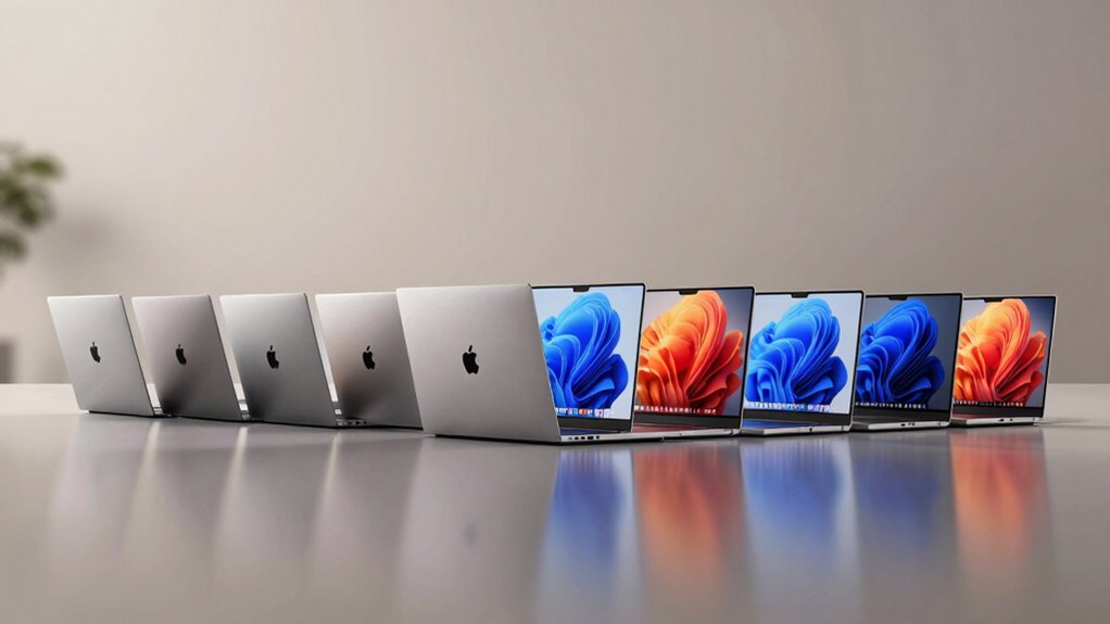 The weight difference between various 4TB MacBook Pro configurations is like comparing a feather to a stone. The 14-inch model weighs around 3.5 pounds, while the 16-inch version tips the scales at about 4.8 pounds. Upgrading storage doesn’t markedly affect weight, but choosing between these sizes helps you balance portability and screen real estate. So, pick what feels right for your work and lifestyle!