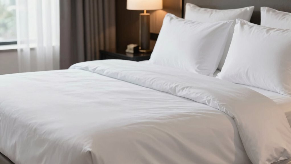 To keep my Egyptian cotton sheets looking their best, I always wash them in cold water and use a gentle cycle. For example, after following this routine, my sheets stayed soft and vibrant for over a year. I avoid fabric softeners and high heat when drying, and I store them in a cool, dry place. These simple tips help guarantee my sheets stay luxurious and durable for years to come.