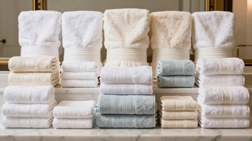 Choosing the perfect Egyptian cotton towel set is like selecting the finest brush for a masterpiece—you want the best for that hotel-quality touch. With so many luxurious options, you can craft a spa-like retreat right at home. Think of these towels as your personal oasis, turning everyday routines into indulgent escapes. So go ahead, choose the set that feels like a gentle breeze—your ultimate comfort masterpiece awaits.