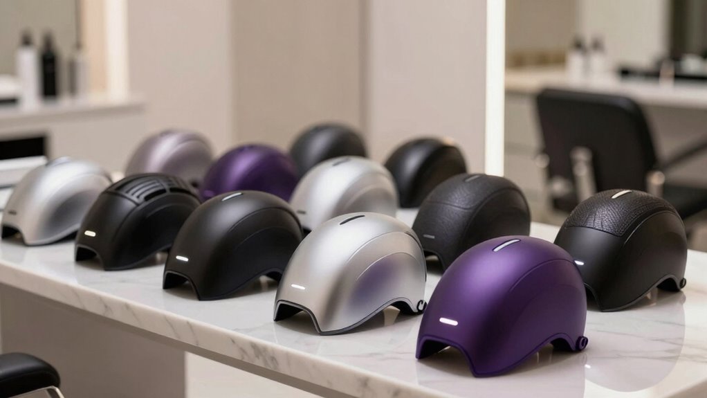 Choosing the right laser cap depends heavily on your hair type, as different textures respond uniquely to laser therapy. Straight, wavy, or curly hair may need varying treatment durations to see results. Fine or thin hair benefits from caps with adjustable settings, preventing over-stimulation and encouraging natural thickening. Coarse or thick hair can usually handle higher laser power levels, but it’s important to select a cap with appropriate settings to avoid scalp discomfort. Hair color and pigmentation also matter; darker hair absorbs laser energy better, boosting effectiveness. Additionally, scalp sensitivity varies—if your skin is sensitive, look for a cap designed to minimize irritation. Matching your hair type with the cap’s features ensures a more comfortable, efficient, and personalized treatment experience.