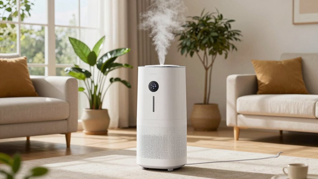 Think of your humidifier as a loyal companion; it needs care to keep giving its best. Replacement filters or parts are usually required every few months, depending on usage and water quality. I recommend checking the manufacturer’s guidelines for exact intervals. Staying proactive guarantees your device runs smoothly, like a well-tuned instrument, providing comfort during those dry winter days. Regular maintenance keeps the air fresh and your humidity levels just right.