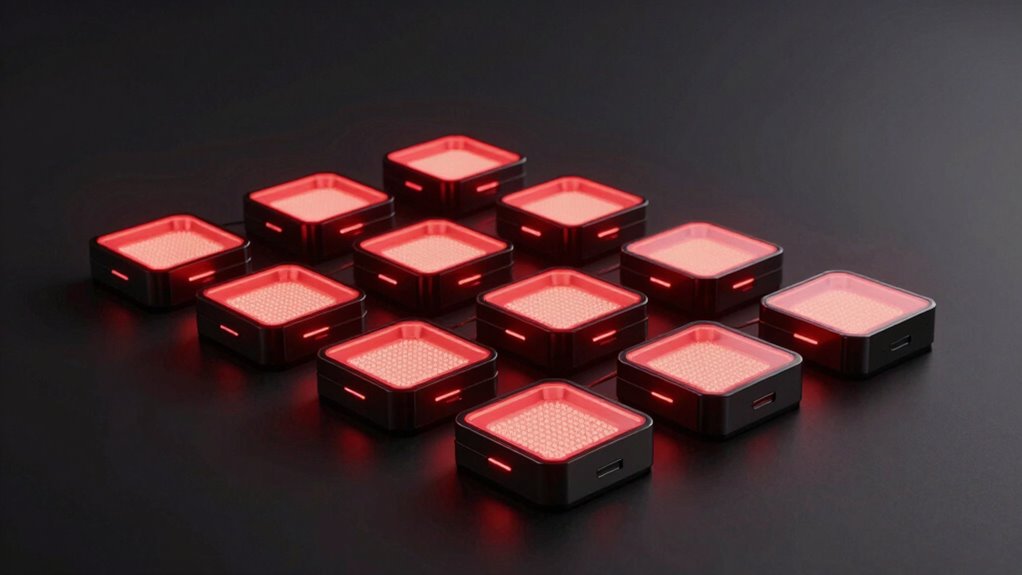 Imagine a sleek, glowing panel gently emitting red light. High-end red light panels incorporate safety features like automatic shut-off, overheat protection, and secure wiring, ensuring safe operation during extended use. They also include adjustable intensity settings and quality certifications, giving me confidence that I won’t face unexpected hazards. These thoughtful features make luxury panels not just effective but also reliable and safe for professional or personal use.