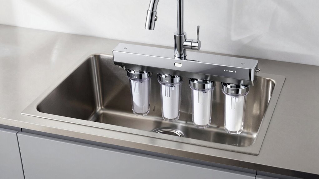 Certification and safety standards play a vital role in guaranteeing that a luxury under sink reverse osmosis system delivers not only high water quality but also long-term reliability. I always look for systems certified by NSF/ANSI standards because these guarantee the product meets strict safety, contaminant reduction, and material safety requirements. It is necessary to choose systems certified for lead-free materials (NSF/ANSI 372) to guarantee safe drinking water free from harmful metals. International standards like EU Standards and UKCA Standards also indicate quality and safety for global markets. Third-party laboratory certifications provide independent proof that the system effectively reduces contaminants like PFAS, arsenic, and fluoride. Certification of all components, including filters, guarantees overall durability, safety, and consistent performance over time.
