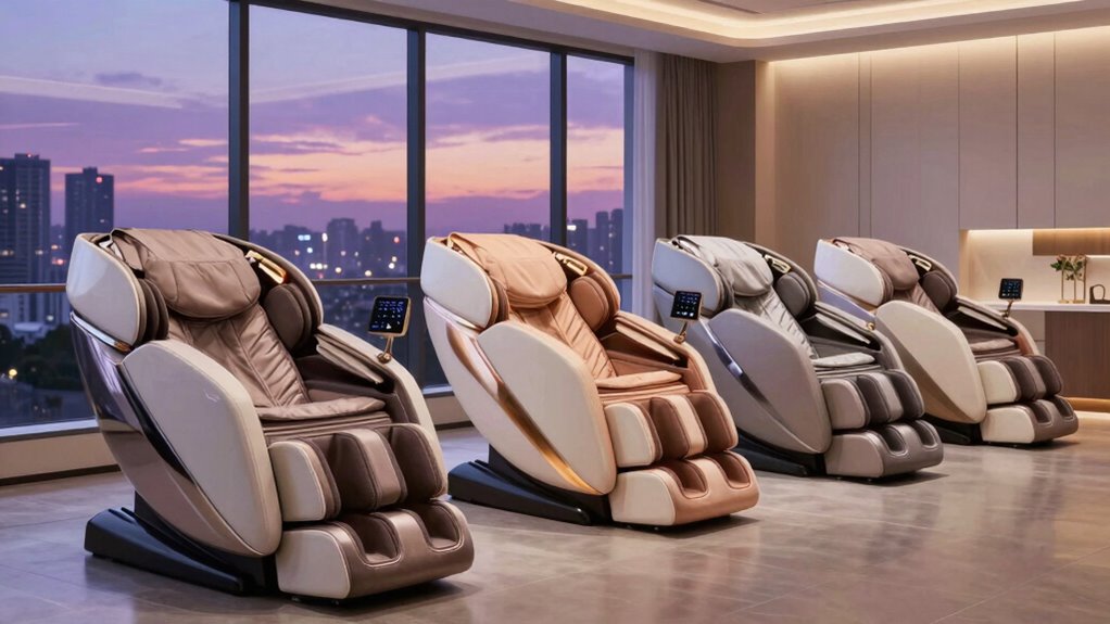 I’ve explored the top 15 massage chairs for zero gravity in 2026, featuring advanced 4D and 6D rollers, AI-powered personalization, heated therapy, and Bluetooth controls. These models blend sleek designs with powerful massage tech to give you deep relaxation and comfort. Whether you want full-body coverage, targeted zones, or customizable presets, there’s a perfect fit. Stay tuned—I’ve got all the details to help you choose the right one for your needs.