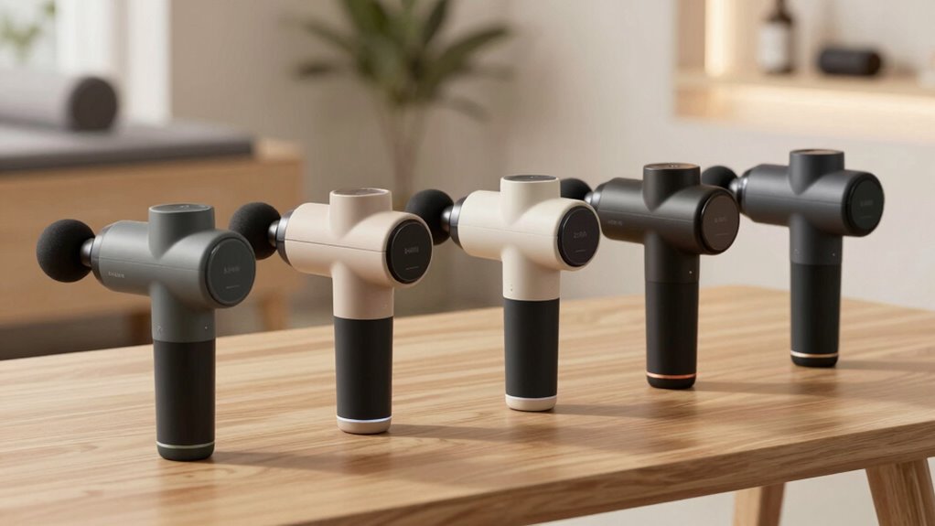 Think of these massage guns as silent guardians—yes, many incorporate noise-reduction technology. I’ve noticed that brands are increasingly weaving in quieter motors and sound-dampening features to create a peaceful experience. It’s like they’re whispering relief rather than shouting it out. So, if quietness matters, you’ll find models that actively mute the noise, transforming your recovery time into a serene retreat.