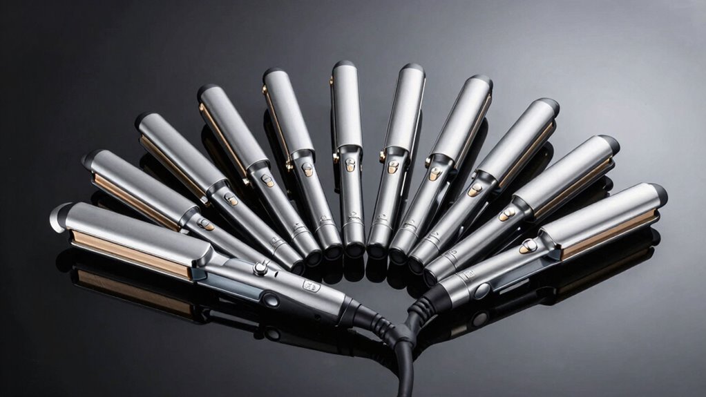 Absolutely, wireless titanium flat irons are out there, and they’re like a gust of fresh air in your styling routine. These cordless tools let you glide through your hair without being tethered, offering freedom and flexibility. While they might not have the same power as traditional models, newer technology guarantees they heat quickly and evenly. Perfect for touch-ups on the go, they’re a game-changer for busy mornings or travel.
