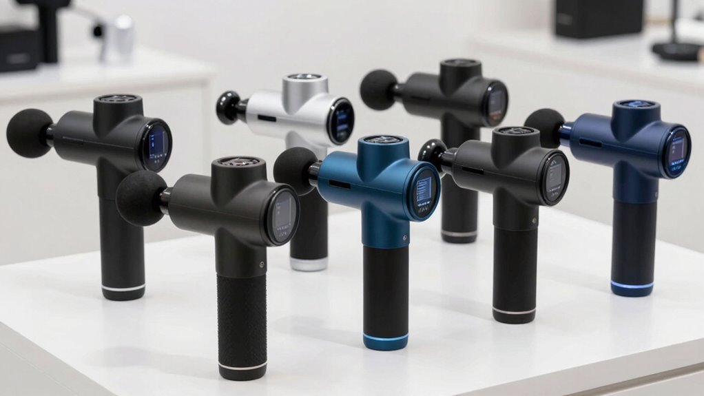 Ever wondered how smart features can enhance your massage experience? Many professional massage guns now come with Bluetooth connectivity, letting you control and customize settings through dedicated apps. Touchscreen controls make adjusting speed, intensity, and heat simple and intuitive. Some models offer real-time feedback on pressure, battery life, and therapy progress, so you can optimize each session. Advanced devices even allow programmable routines and personalized recovery plans based on your activity data. Integration with health tracking systems enables monitoring your recovery over time and receiving tailored therapy recommendations. These smart features not only make your massage more effective but also more convenient, allowing for precise control and personalized care. Choosing a device with these capabilities can substantially elevate your recovery and relaxation routine.