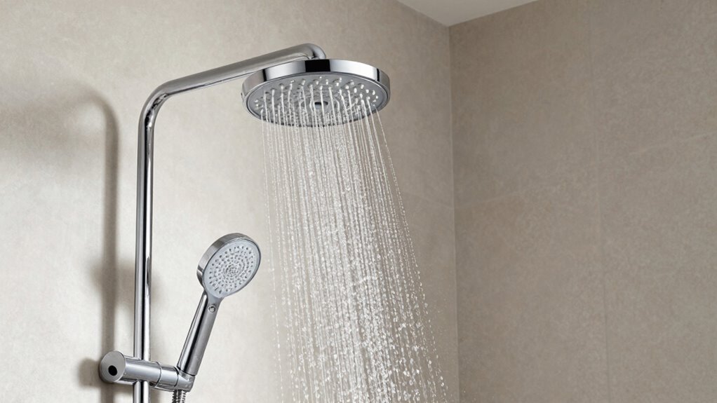 A rainfall shower head system with good adjustability focuses on making it easy to customize the water flow and angle for maximum comfort. I look for models with a 360-degree ball joint or pivot, so I can effortlessly change the spray angle to suit my preferences. Ergonomic handles and intuitive controls make height and flow adjustments smooth, reducing frustration during setup. Being able to modify water flow direction and spray pattern enhances the shower experience, making it more personalized. Multi-angle adjustability is especially important for accommodating users of different heights, including children and the elderly, ensuring everyone enjoys comfortable showers. Smooth, effortless adjustment mechanisms help me find the perfect angle and pressure without strain, creating a relaxing and satisfying shower every time.