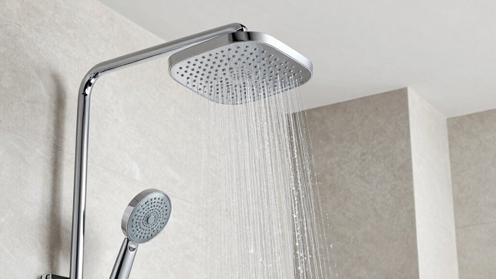 A rainfall shower head system with spray mode versatility enhances your bathing experience by offering a range of options to suit your preferences. Multiple spray modes like rainfall, massage, mist, and pause let you customize your shower for relaxation or refreshment. Adjustable settings allow you to switch seamlessly between gentle drizzles and powerful jets, providing personalized comfort. Systems with dual or multiple shower heads often include various spray options, delivering all-encompassing coverage and tailored experiences. Additionally, a multi-function handheld spray adds flexibility, enabling targeted cleaning, rinsing, or massage modes beyond the fixed rainfall feature. Easy-to-use controls or diverters make switching between spray modes simple and convenient, ensuring you can effortlessly find the perfect shower experience every time.