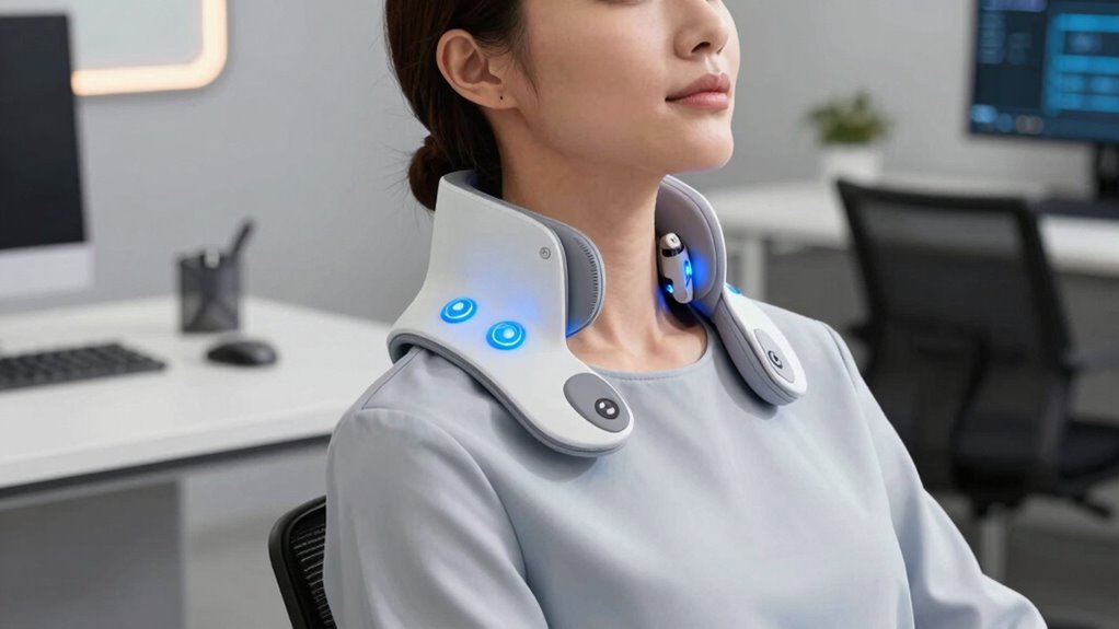Yes, you can use these massagers while working at your desk, but I recommend doing so cautiously. Make sure they’re set to a comfortable intensity and avoid prolonged use to prevent discomfort. Keep an eye on your posture and confirm you’re not straining your neck or shoulders. Taking short breaks to adjust or turn off the massager helps you enjoy relief without interfering with your work.