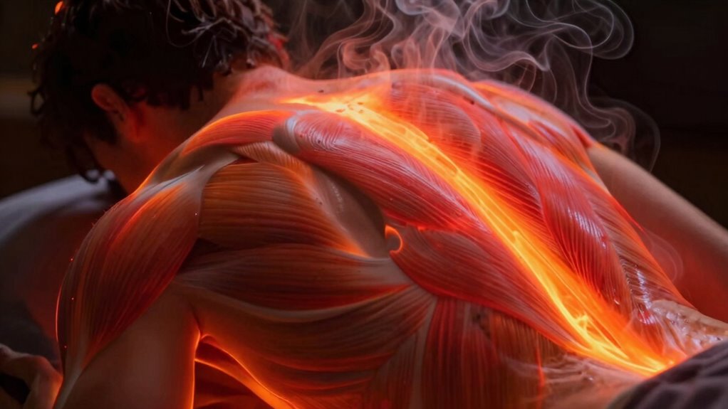 When experiencing infrared heat treatments, you often feel a gentle, soothing warmth that penetrates deeply into your muscles and tissues. This sensation promotes thermal comfort and enhances your heat perception without overwhelming your senses. You might notice: